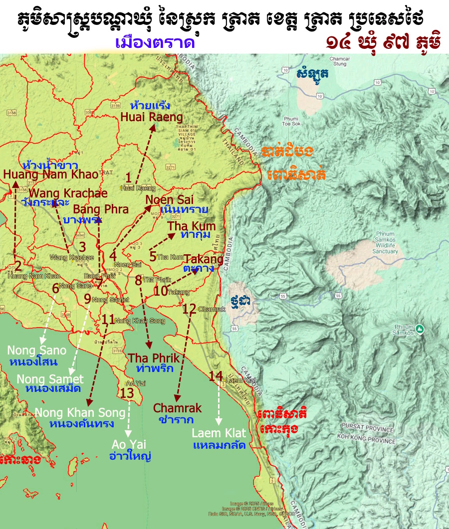 ផែនទី ភូមិសាស្រ្តនយោបាយ ព្រំដែន ខេត្ត ត្រាត ប្រទេសថៃ